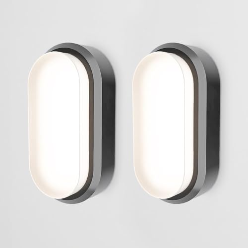 HOFTRONIC Lot de 2 - C-Series LED Lampe de cave noir - 12W 1160lm Applique Ovale - IP54 Applique Murale - 4000K Blanc neutre - Applique Plafonnier pour salle de bain cave WC garage Atelier