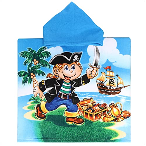 com-four® Poncho de Bain avec Capuche - Drap de Plage avec Motif Pirate - Plaid à Capuche pour la Plage, la Piscine et la Salle de Bain - Serviette Douce à Enfiler (Poncho Pirate)