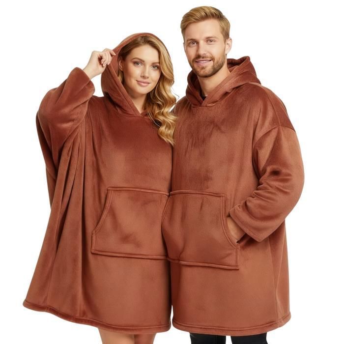 Plaid Pull pour Homme et Femme – Taille Unique 118 x 85 cm – Couverture avec Manche Longue Capuche et Poche - Coloris Terracotta