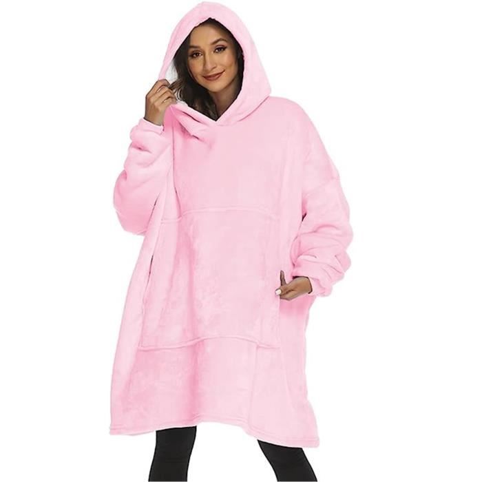 Plaid pull à manche longue avec capuche et poche FREOSEN - Rose - Doux et chaud - 80x110cm