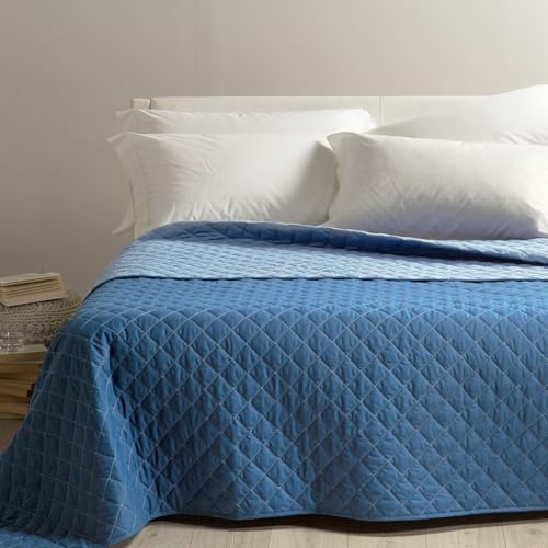 MOMOMUS Fine Jeté de Lit, Dessus de Lits et Couvre-Lits - Ideal comme Fine Plaid Couvre Lit et Plaid Canapé Grande Taille – Bleu, 230x260 cm