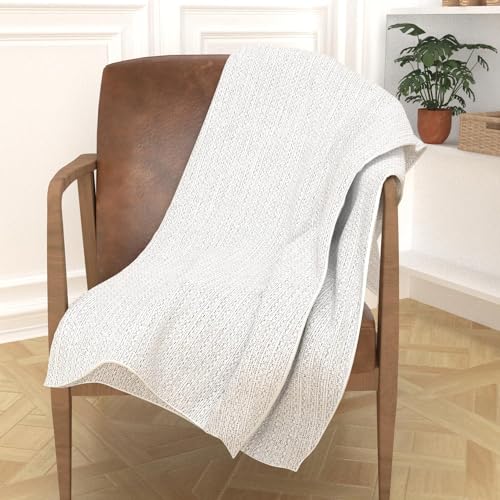HOME DECO FACTORY - TX9322, Plaid Gaze en Coton Jacquard Beige pour Décoration Intérieure, Conçu pour Canapé ou Lit, Dimensions 120x150cm, Couleur Blanc Craie