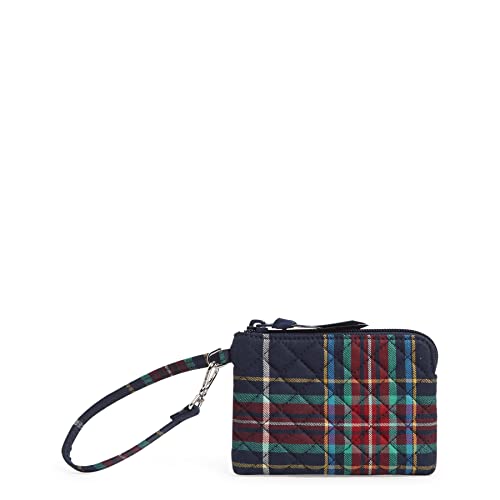 Vera Bradley Mini Pochette Portefeuille en Coton avec Clip et Fermeture éclair pour Femme Taille Unique, Tartan Plaid - Coton recyclé, Taille Unique, Mini Pochette Portefeuille avec Clip en Coton et