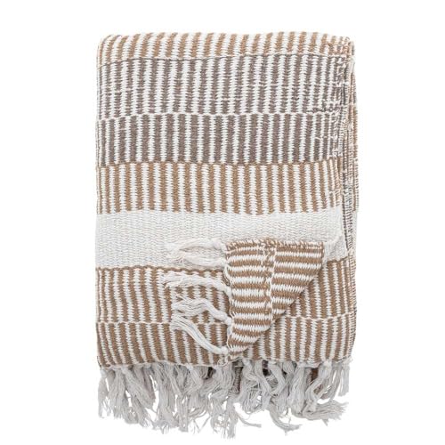 Bloomingville Couvre-lit de qualité supérieure 160 x 130 cm – Plaid Polyvalent en Coton recyclé idéal comme Couverture de canapé ou pour lit et Jardin, Doux et Facile d'entretien (Naturel)