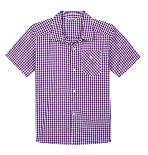 Bienzoe Garçon Coton Plaid Bouton Bas Manche Courte Chemise Violet/Blanc 9/10