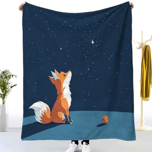 EYLOZS Plaid Couverture en Flanelle Super Douce - Couverture Douce et Légère pour Lit, Canapé, Camping et Voyage,Le Petit Prince et Le Renard regardent Le ciel100x130cm