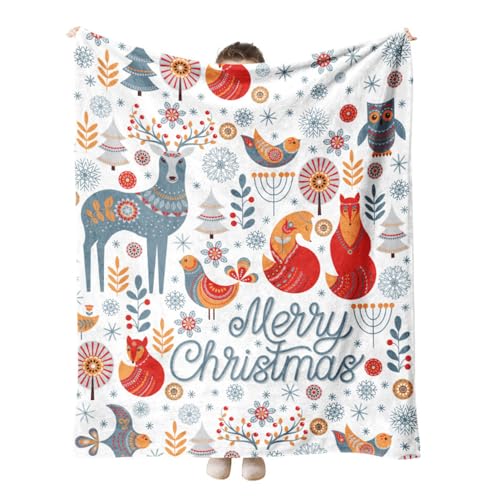 Hixingo Plaid Couverture en Flanelle Noël avec Imprimé Flocon de Neige Hiver Super Doux et Chaud Jeté de Canapé Couverture Lit 1 Personne, Convient à Toutes Les Saisons (127x102cm,Renard)
