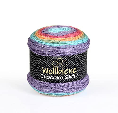 Cupcake Glitter Simli Lot de 3 pelotes de laine à tricoter, 150 g chacune, 450 g, pour tricot et crochet pour bébé, laine turque, dégradé de couleurs, paillettes, arc-en-ciel 2030