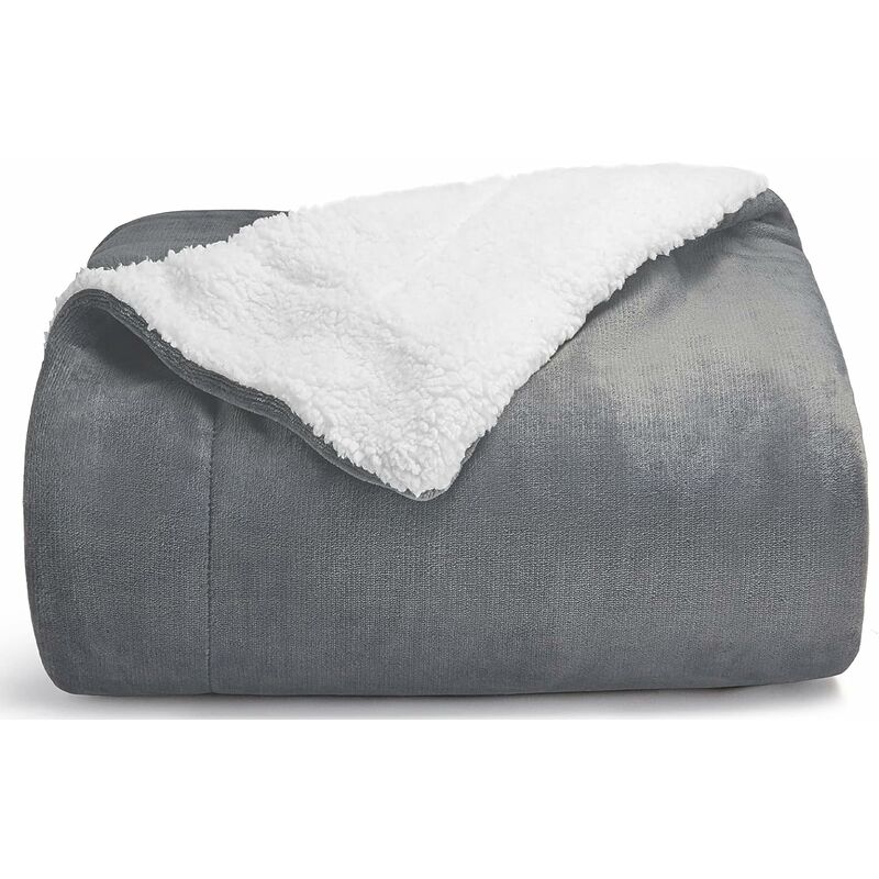 Memkey - Plaid Couverture Polaire en Sherpa, 130x160 Couverture lit 1 Personne Gris Anthracite, Plaid Canape Fourrure Jeté de Canapé Réversible, Jete