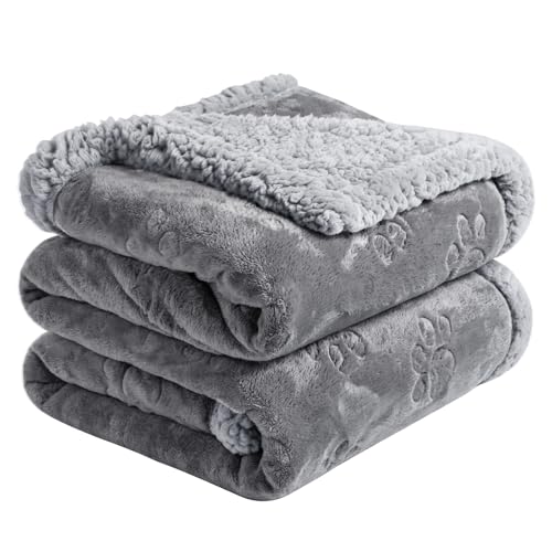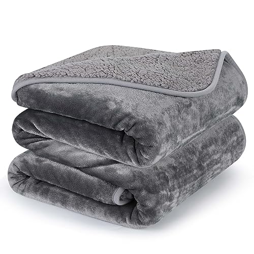 PETTOM Couverture Imperméable Chien, Plaid Anti Pipi Chien en Sherpa et Flanelle, Protège Canapé Lit pour Chiot Chat, Épais et Lavable, Gris, 127x152 cm