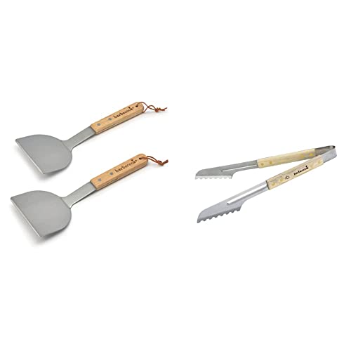 Barbecook Set de 2 spatules à plancha, ustensiles plancha pour Barbecue plancha & Pince BBQ, Pince de Luxe, Pince à Barbecue, Accessoire Barbecue, Acier INOX/Bouleau, 40 cm