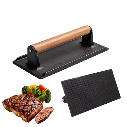 Presse à bacon - Moule rectangulaire résistant pour cuisine professionnelle | Ustensile compacteur viande bacon fer bois 16 x 8 x 8 cm 900 g pour hamburgers tortillas barbecue plancha camping cuisine