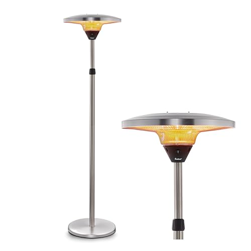 ICQN IQ.0900.APW Radiateur infrarouge sur pied pour pièces jusqu'à 9 m² 900 W IP20 Chauffage électrique 1,5 m Câble chauffant pour bureau ou maison Chauffage infrarouge