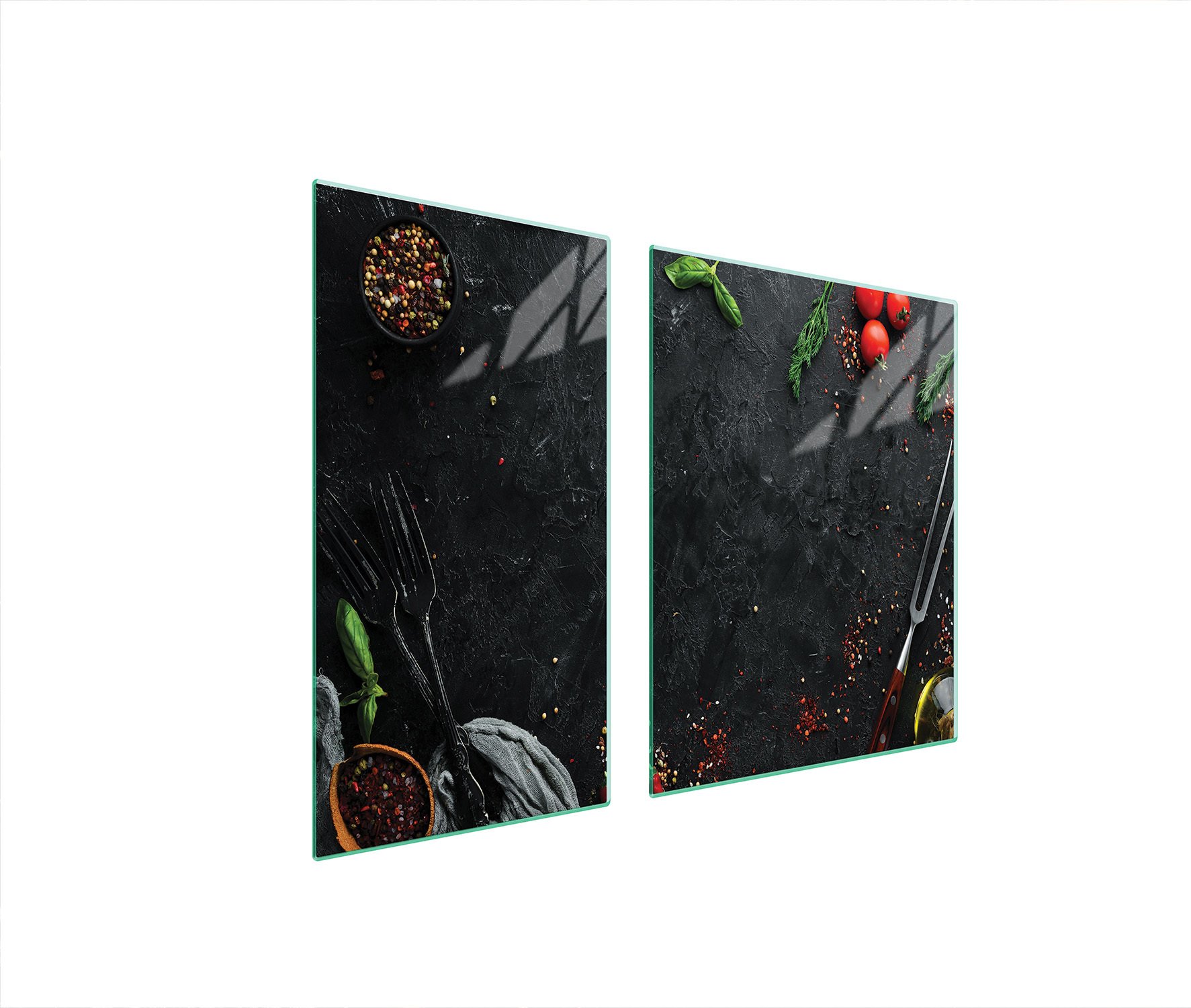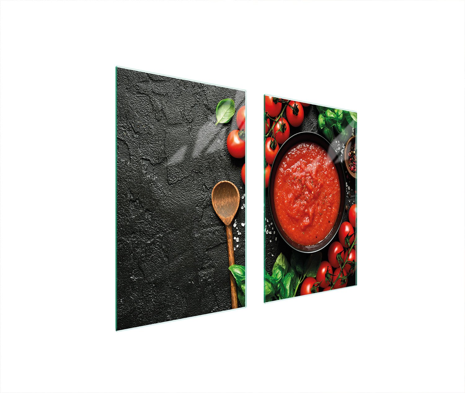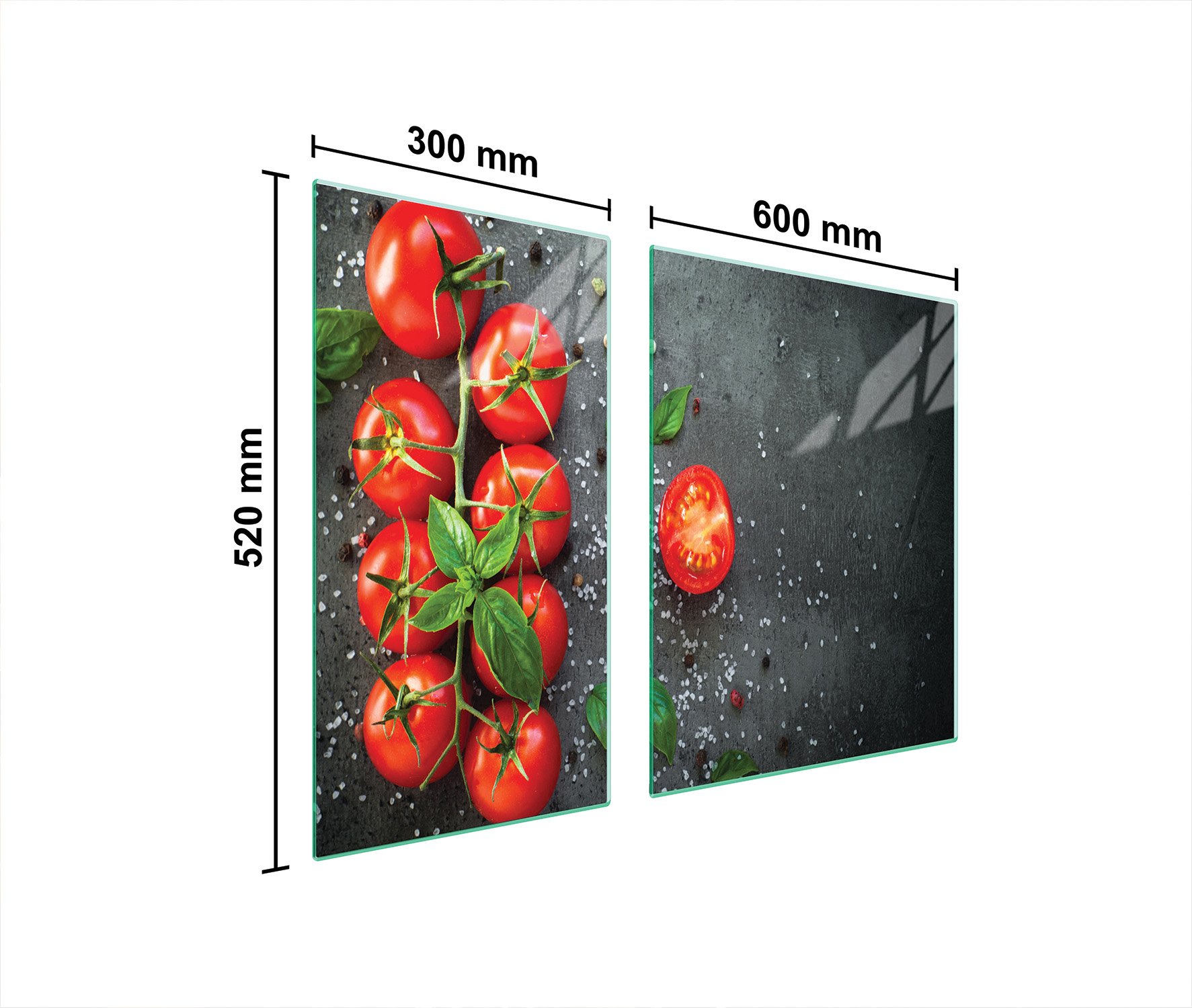 Plaques de recouvrement pour cuisinière 2 pièces 90x52 Couverture pour champ vitrocéramique Verre Planche à découper Ardoise Tomates