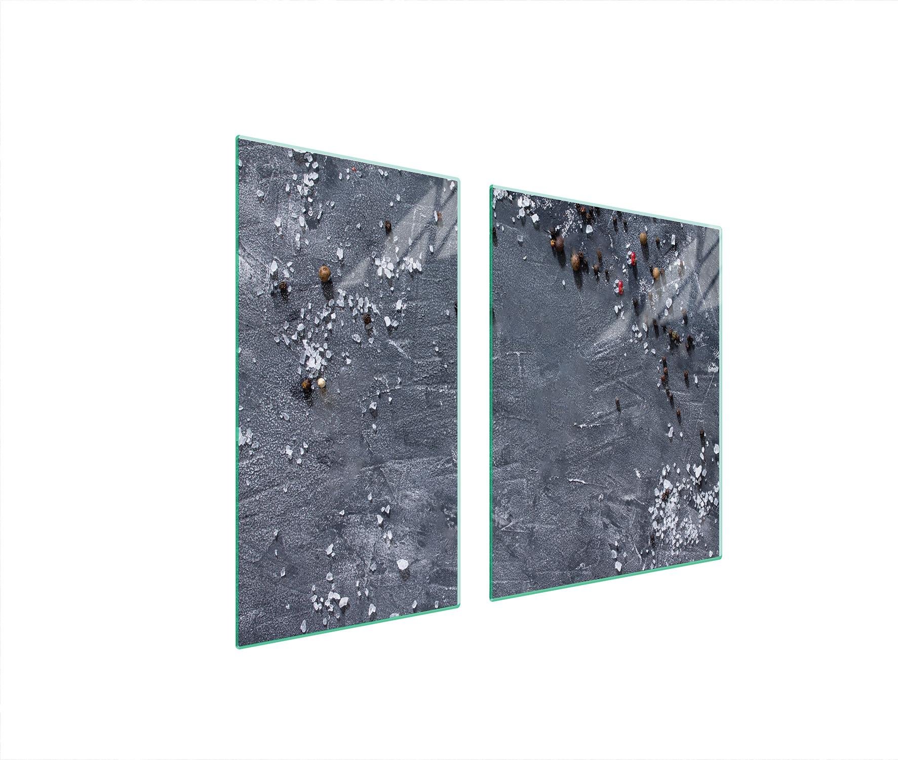 Plaques de recouvrement pour cuisinière 2 pièces 75x52 Couverture pour champ vitrocéramique Verre Planche à découper Ardoise Épices