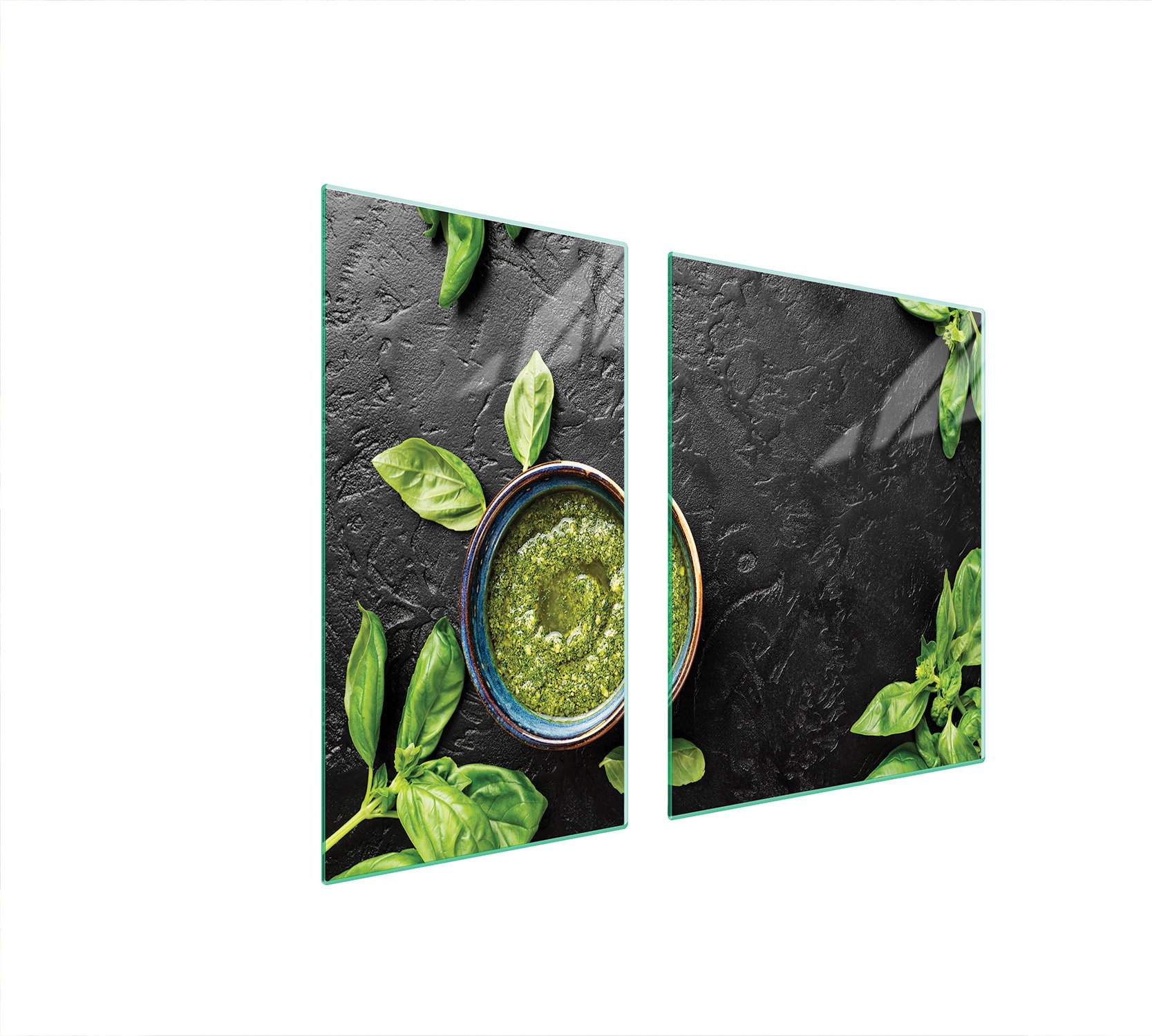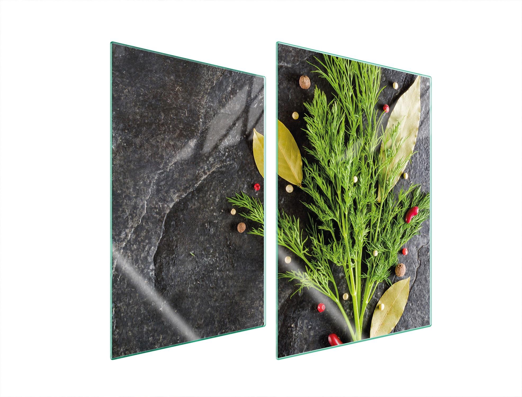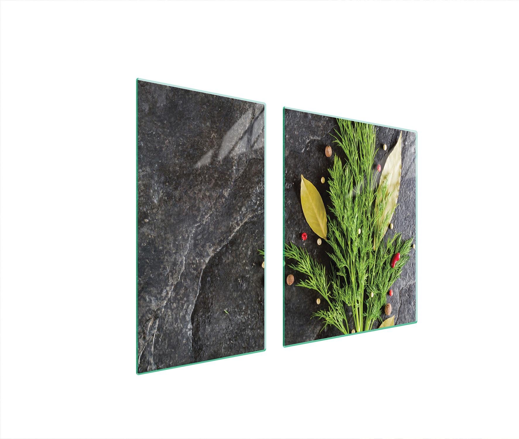 Plaques de recouvrement pour cuisinière 2 pièces 35x52 Couverture pour champ vitrocéramique Verre Planche à découper Ardoise Basilic
