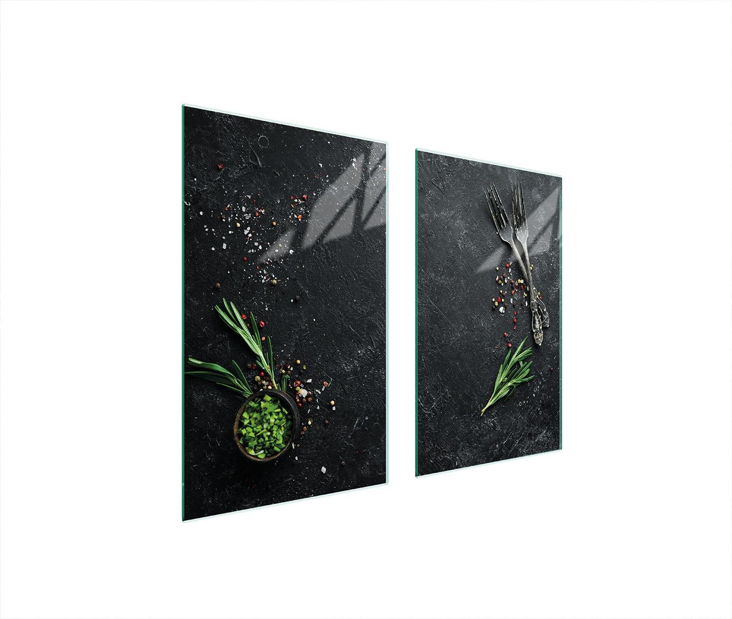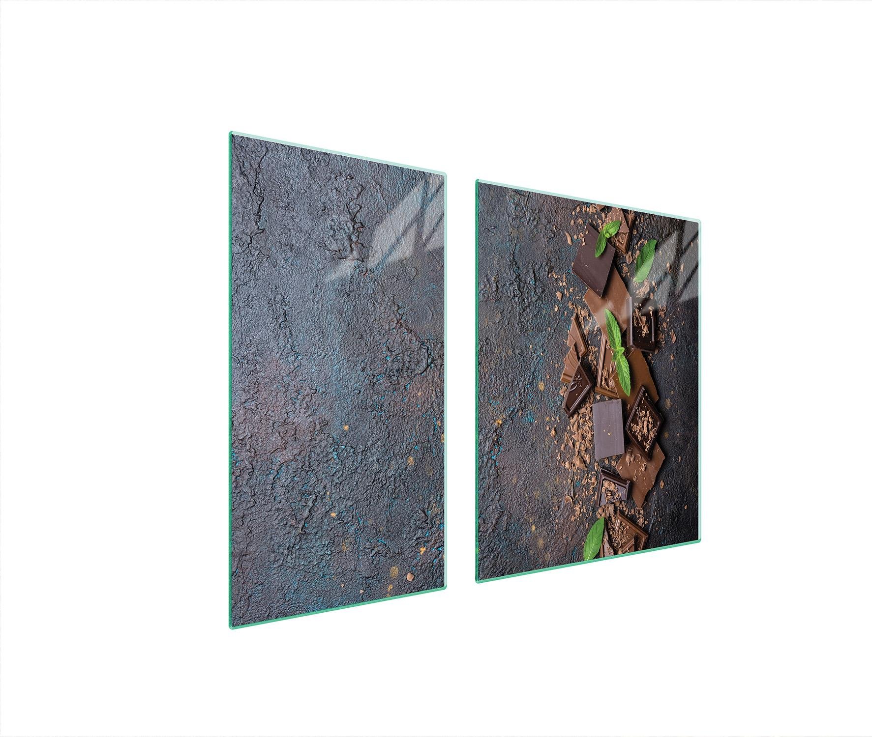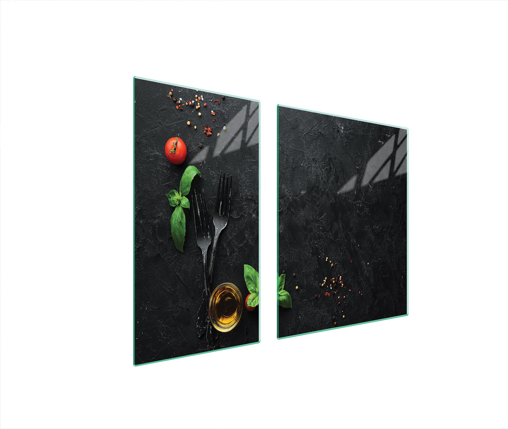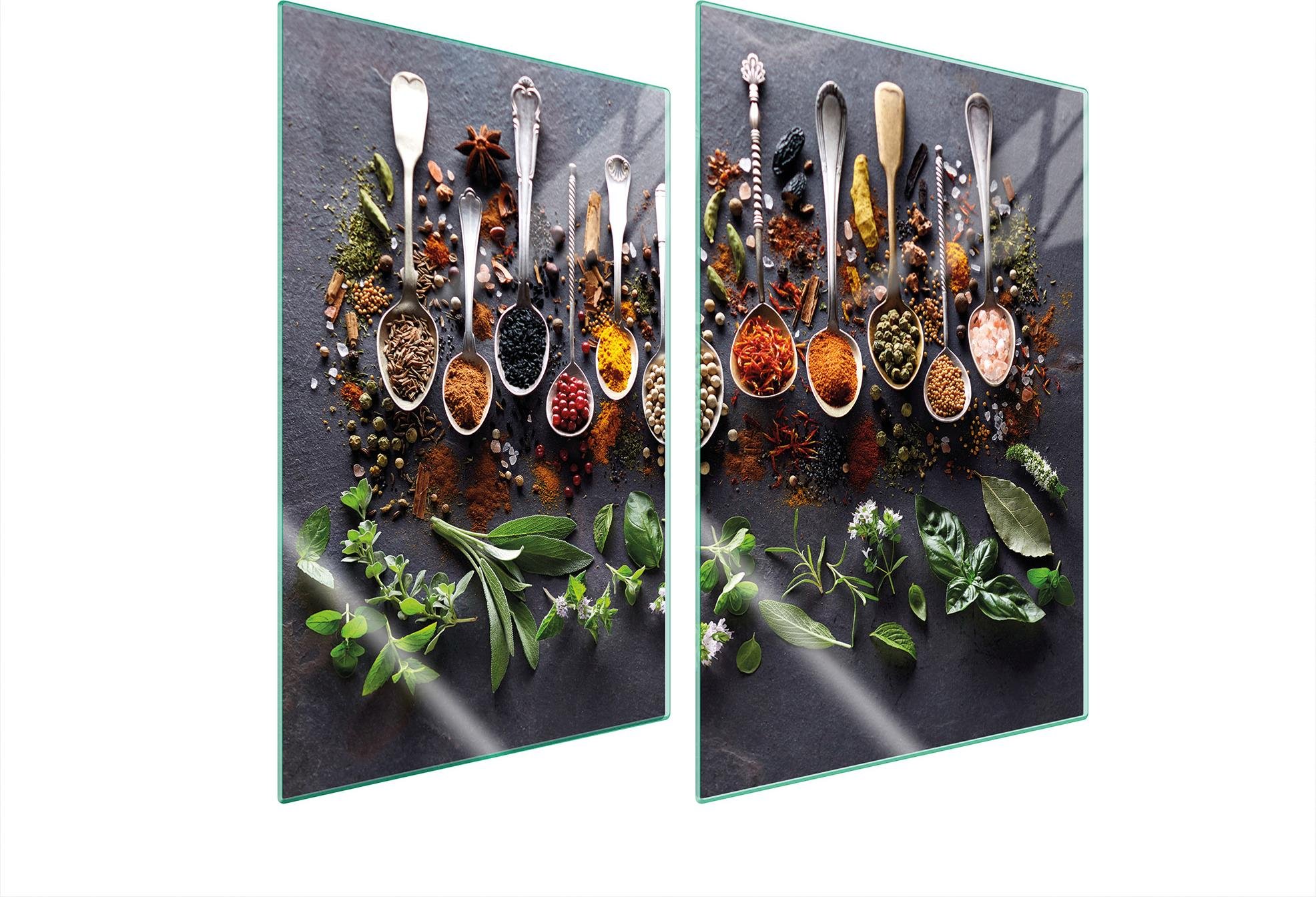 Plaques de recouvrement pour cuisinière 2 pièces 35x52 Couverture pour champ vitrocéramique Verre Planche à découper Ardoise Basilic