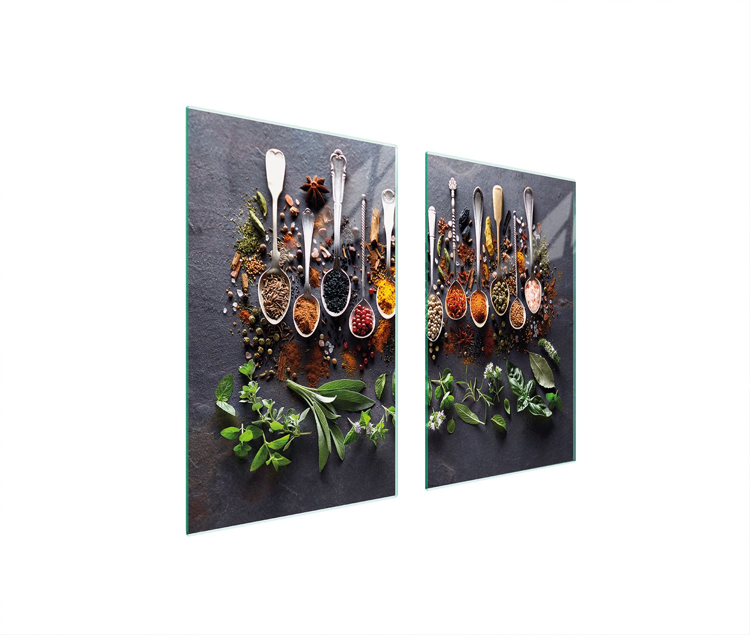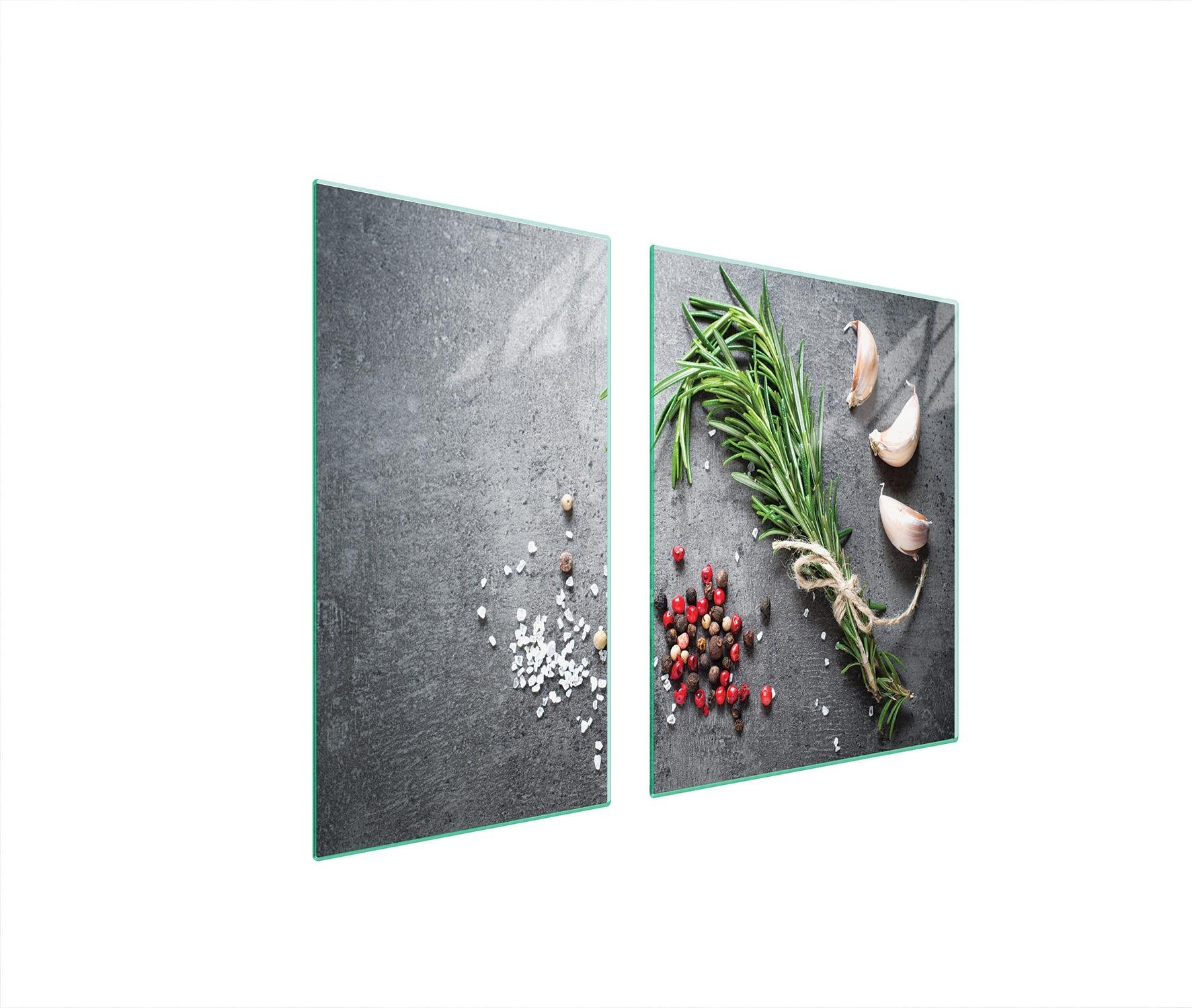 Plaques de recouvrement pour cuisinière 2 pièces 35x52 Couverture pour champ vitrocéramique Verre Planche à découper Ardoise Romarin