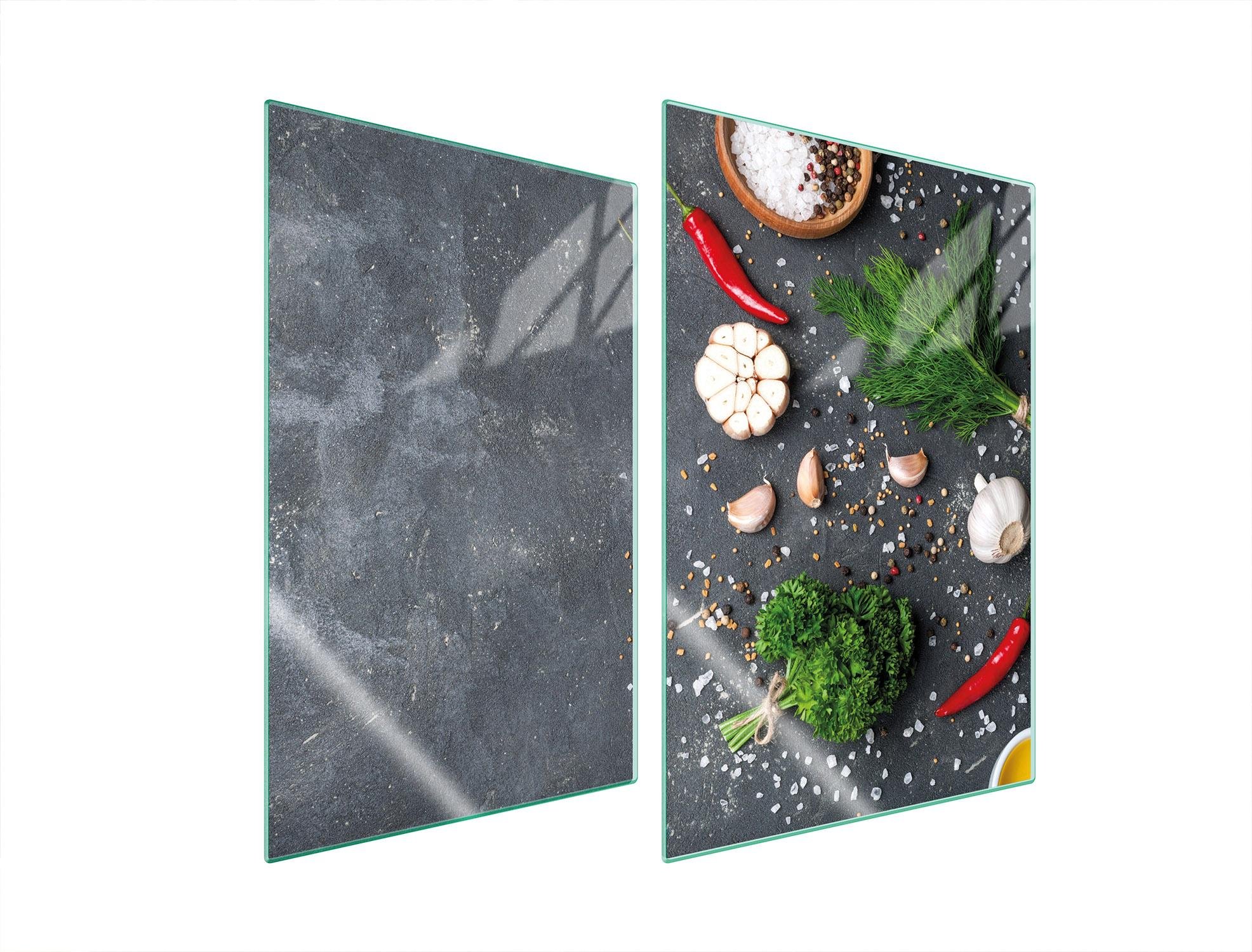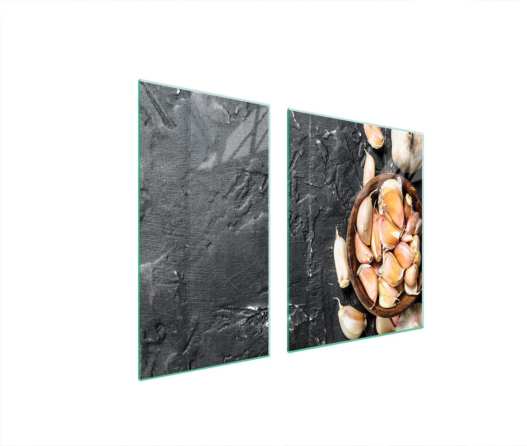 Plaques de recouvrement pour cuisinière 2 pièces 35x52 Couverture pour champ vitrocéramique Verre Planche à découper Ardoise Ail