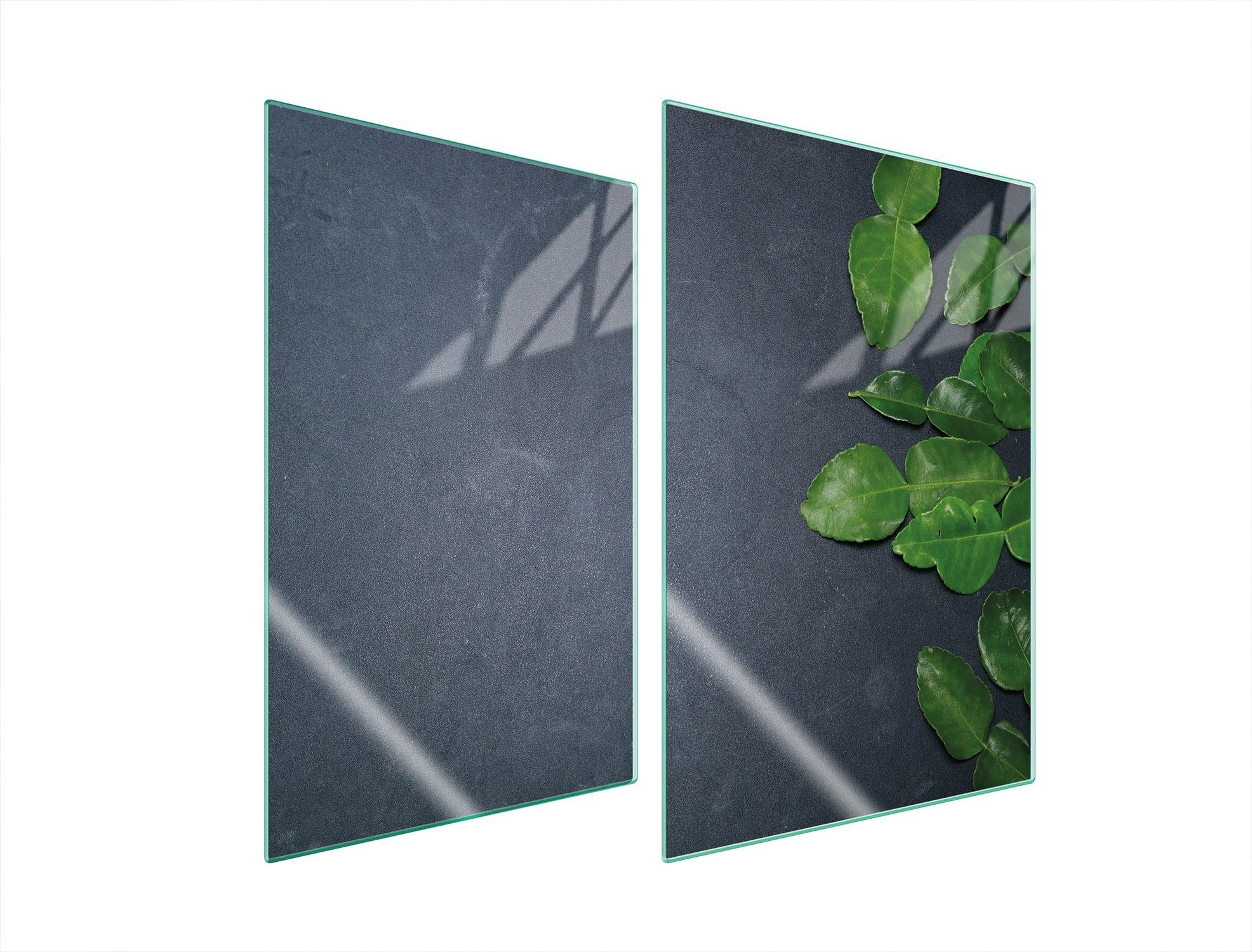 Plaques de recouvrement pour cuisinière 2 pièces 75x52 Couverture de champ vitrocéramique verre Planche à découper ardoise feuillage