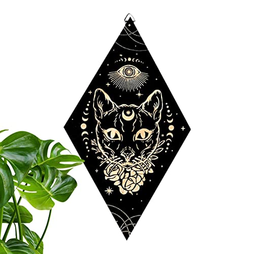 craspire Décorations Murales en Bois Boho 3pcs Noir Pendule en Bois Planche Main Soleil Oeil Lune Cristal Serpent Tenture Murale Ornement Losange Art Mural avec Motifs de Tarot