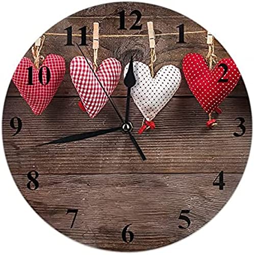 Oudrspo Happy Lovers Day Horloge Murale Saint Valentin Romantique Coeurs Forme Silencieux sans Coutil Horloge Murale Décorative À Piles Horloge Murale 10 Pouces Planche en Bois Rustique