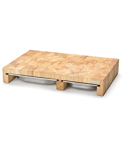 Bergner Natural | Planche à découper de Cuisine | Fabriquée en Bois d'Acacia | avec des tiroirs à déchets coulissants | Pratique pour Cuisiner | Facile à Nettoyer et à Ranger