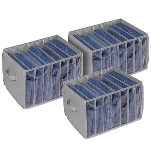 Zilink Lot de 3 organiseurs de vêtements avec planche de support – Bacs de rangement transparents pour placard avec 7 grilles de séparation, organiseur de pull pour placard, pour jeans, pantalons