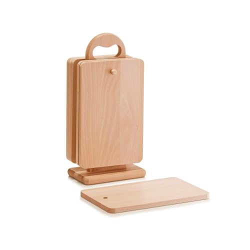 Wintem Lot de 6 planches à découper avec porte-gobelet en bois de hêtre – Idéal pour couper de nombreux aliments comme la viande, le poisson ou le pain, idéal pour ranger les planches à découper de