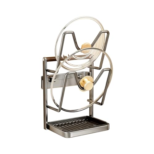 zjhukfmc Organisateur de couvercle de casserole – Étagère verticale pour cuillère | Avec bac d'égouttement pour casseroles et poêles en acier inoxydable, support de couvercle, pour vaisselle, planches