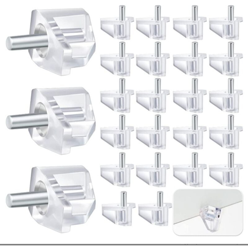 100Pcs Étagère Broches, 5mm Support D'étagère Etagere, Acier Galvanisé et Plastique Transparent, Taquets et Goupilles pour Planches en Verre ou en