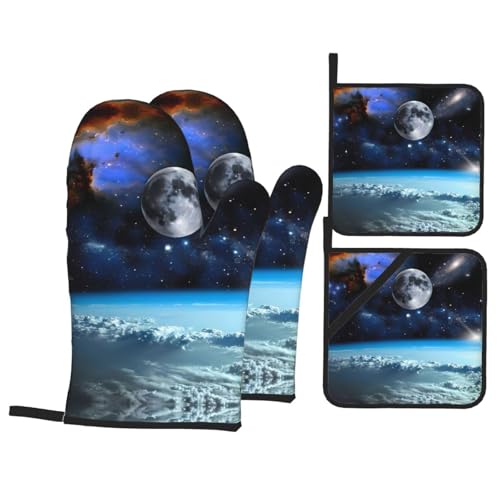 Gants De Four Et Maniques Space Planet Print Très Épais Oven Gloves Résistants À La Chaleur Gant De Cuisson pour Barbecue Grillage Set of 4
