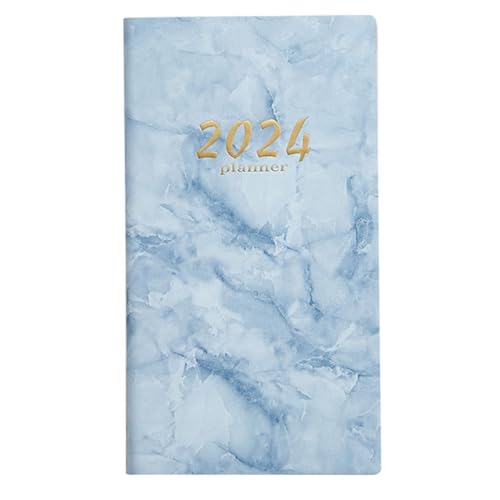 curfair Planificateur de Poche en Papier Lisse A6 2024, Anglais, Simili Cuir, Couverture Rigide, Ruban, Signet, sans saignement, épais, Agenda Quotidien, hebdomadaire, Gestion du Temps Bleu