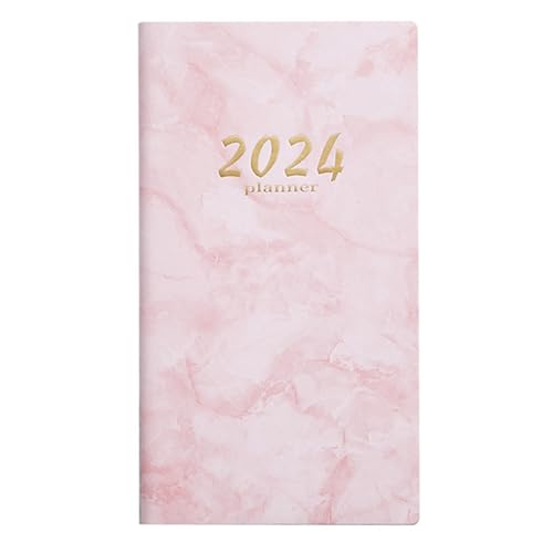 curfair Planificateur de Poche en Papier Lisse A6 2024, Anglais, Simili Cuir, Couverture Rigide, Ruban, Signet, sans saignement, épais, Agenda Quotidien, hebdomadaire, Gestion du Temps Rose