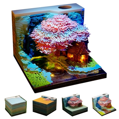 Licsaliwe Bloc-Notes de Calendrier 3D avec lumière LED, Calendrier de Bureau Mountain Tree House, planificateur hebdomadaire 2026 et décoration Bureau Unique