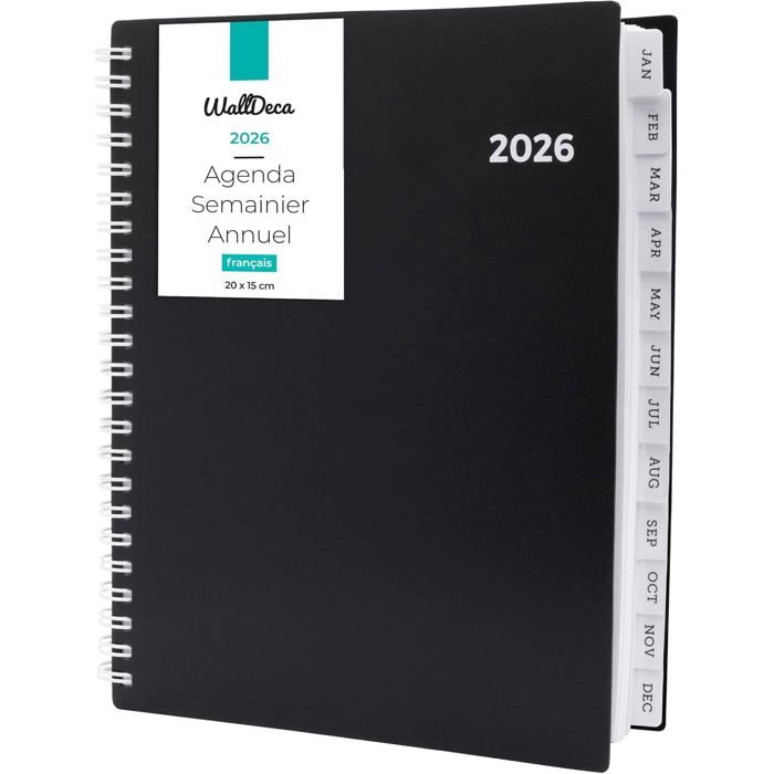 Agenda Journalier 2026 Planner 2026 Scolaire et Familial Semainier et Planificateur Hebdomadaire Mensuel (20 x 15 cm Français)