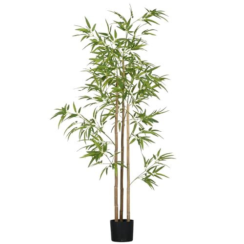HOMCOM Plante Artificielle Bambou Arbre Artificiel Hauteur 180 cm avec Pot, décoration Interieur, très réaliste