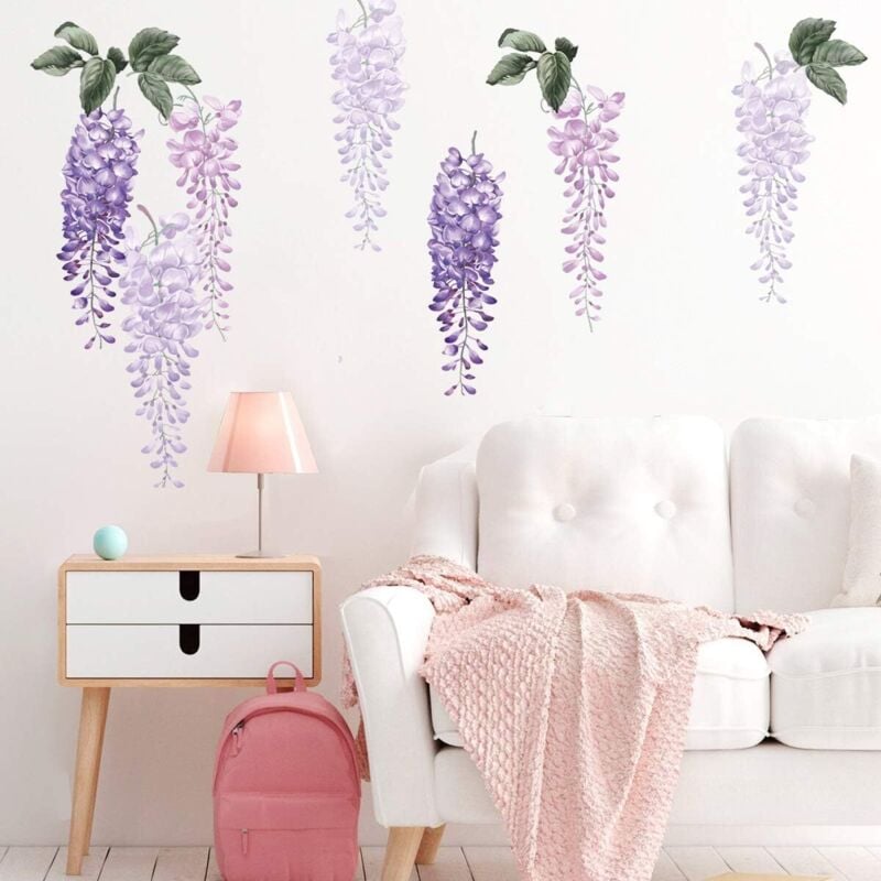 Serbia - Stickers Muraux Violet Glycine Fleur Autocollant Mural Pendaison Vigne Plante Décoration Murale Chambre Fille Salon Bureau