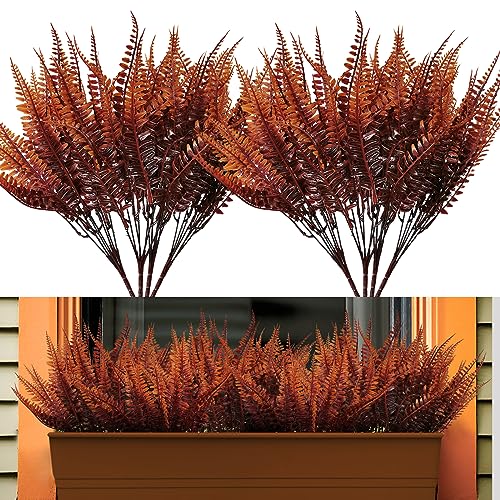 SNAIL GARDEN 8 PCS Fausses Fougères Sauvages Automne, Automne Artificielles Faux Boston Fougères Plantes Artificielles Extérieur Arbuste Avant Porche Fenêtre Boîte Panier Be Jardin