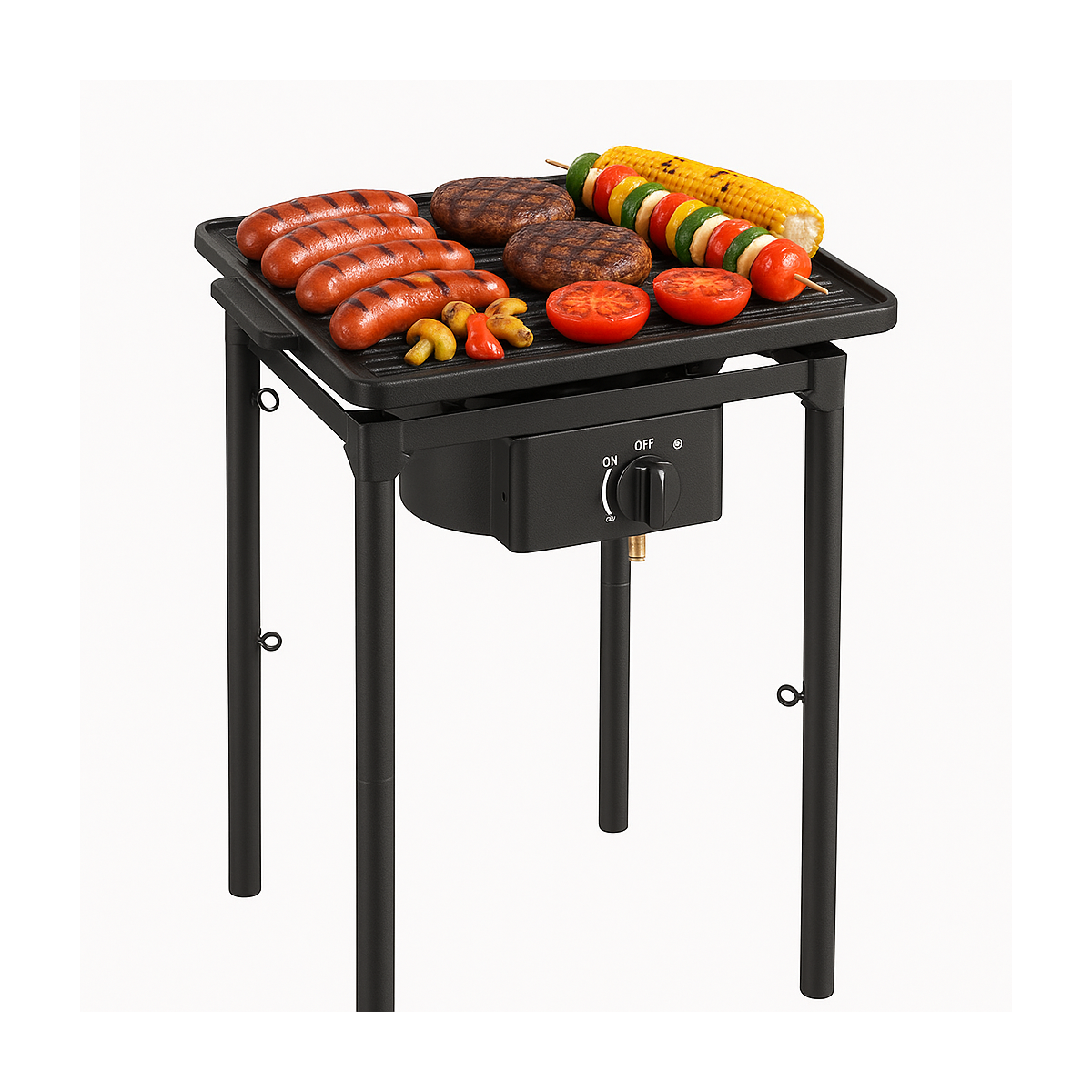 INTEC - Réchaud à Gaz 1 feu Barbecue Grill 4,5kW 2en1 Bruleur Fonte + Plaque Grill Fonte 40x40cm 3 hauteurs modulables Piezo