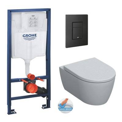 Grohe Pack WC Rapid SL + suspendu Geberit iCon avec fixations invisibles Plaque de commande noir mat (RapidSL-ICon-KF0)