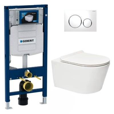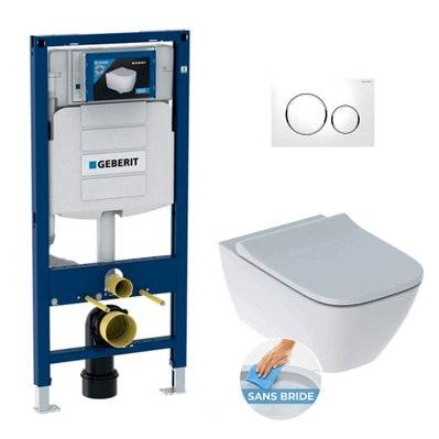 Geberit Pack WC Bati Duofix + Cuvette suspendu Rimfree Plaque de commande Sigma20 Blanc chrome (GebiCon-C)