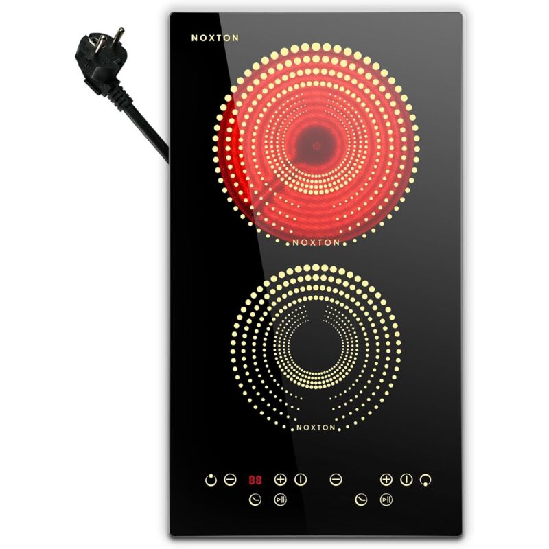Plaque VItrocéramique 2 Feux Encastrable, NOXTON Plaque de Cuisson Electrique 2 feux, 3000W, Plaque Deux Feux Vitrocéramique avec Prise, Minuterie,
