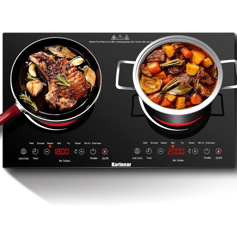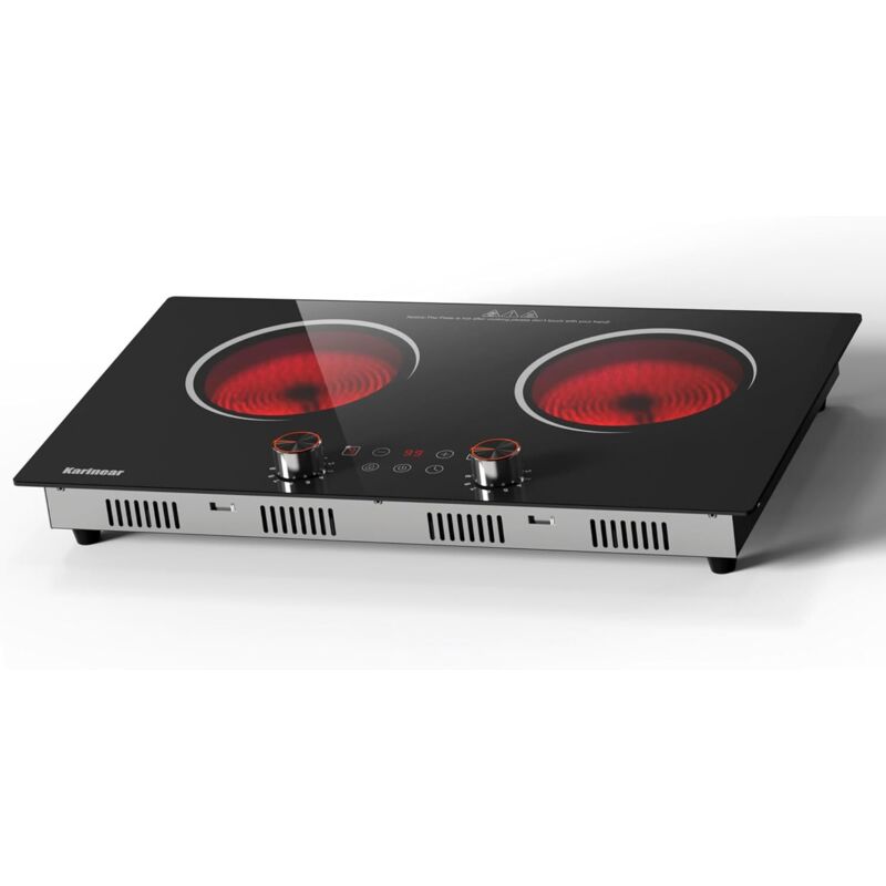Plaque Vitrocéramique 2 Feux à Poser, Karinear, Plaque Electrique Posable 2 Foyers, Plaque de Cuisson Electrique Portable avec Prise VDE, Sécurité