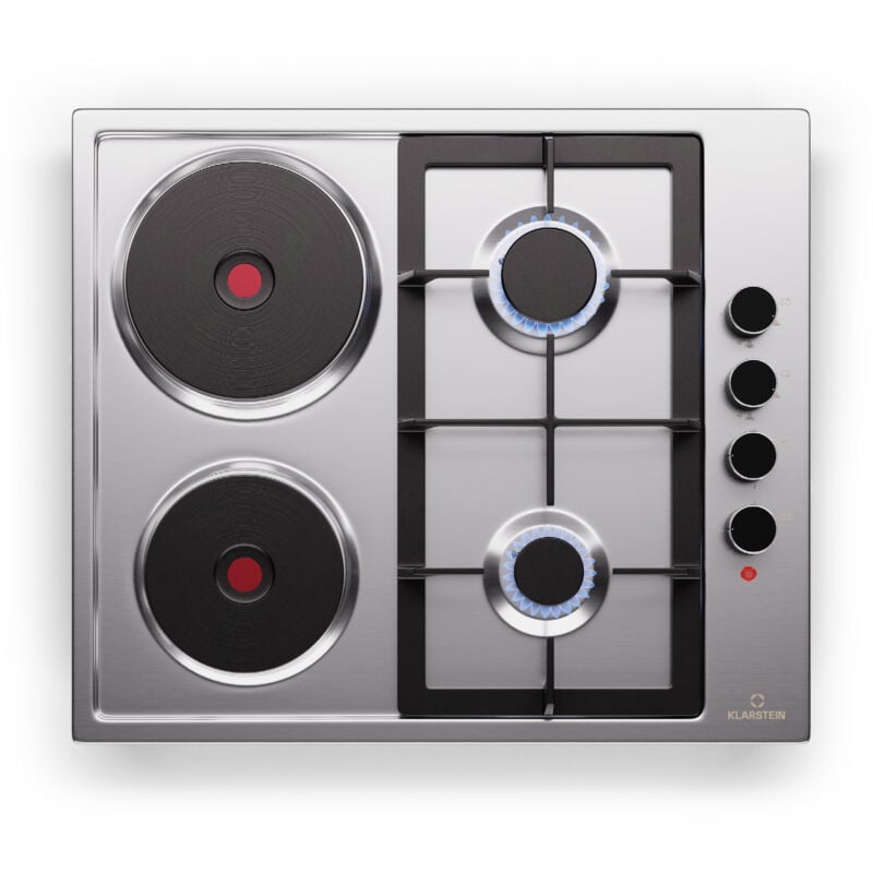Klarstein – Plaque de cuisson gaz et électrique 4 feux – 2 brûleurs gaz + 2 électriques – 6300W – Sécurité avec arrêt automatique de flamme
