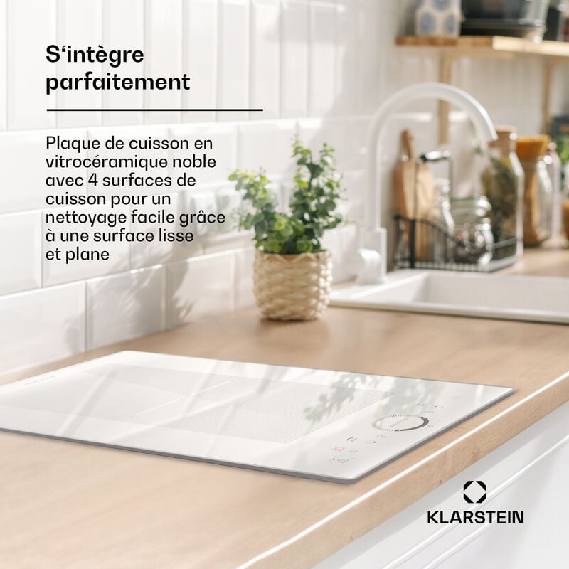 Klarstein 2-EN-1 Plaque Induction Electrique et Hotte Aspirante, 4 Feux, Ventilateur Débit d'Air 654m³/h, Tables de Cuisson 4 Zones, Céramique, Commande Tactile, Classe Energétique A