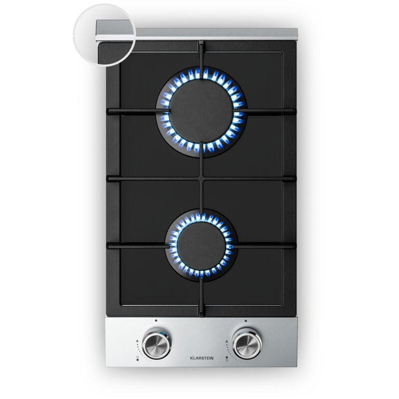 Klarstein Tables de Cuisson à Gaz, Plaque de Cuisson Gaz à 2 Brûleurs, Table de Cuisson Electrique à 2 Feux de 4200W, Cuisiniere Gaz, Gaziniere Gaz avec Brûleurs en Acier Inoxydable, Cuisinières GPL
