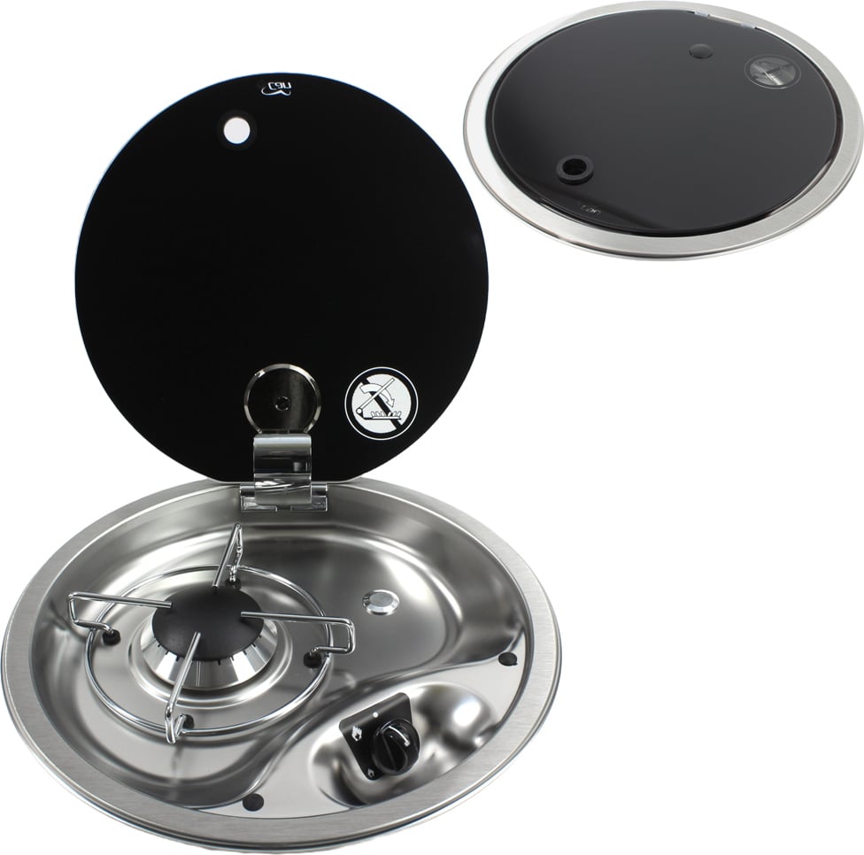 Can 1 feu gaz plaque de cuisson + couvercle verre rond Ø 340 mm