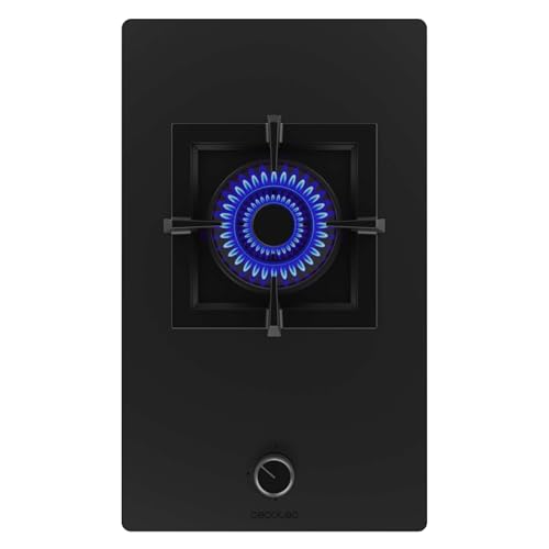 Cecotec Plaque de Gaz Butane et Naturel 1 Feu Bolero Squad G 1200S Glass Black. 3500 W, Verre Noir, Grilles Individuelles en Fonte, WOK Triple Couronne, Allumage Électrique, Système de Sécurité