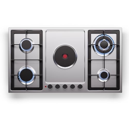 Klarstein MultiChef 5 Plaque De Cuisson Gaz Et Électrique, 4 Brûleurs Gaz & 1 Électrique, 10.1Kw, Acier Inoxydable, Allumage & Arrêt Automatique, Sécurité Enfants, Compacte 87X8X50Cm